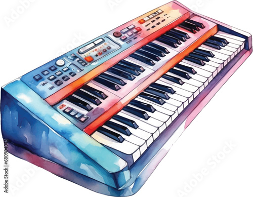 Fototapeta premium Watercolor electric keyboard on white background