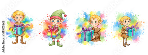 Fototapeta premium Watercolor Elves with Gifts