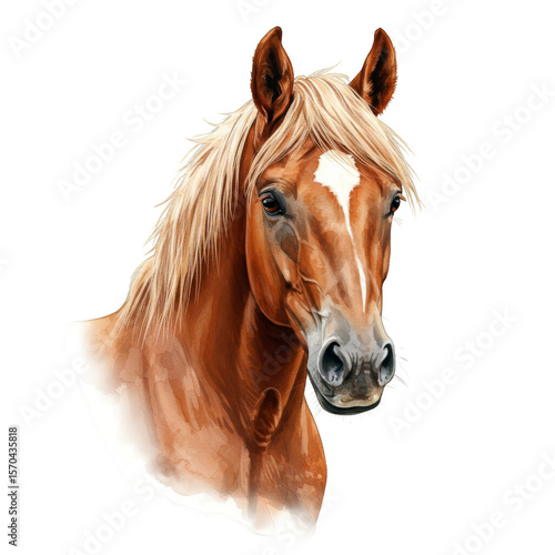 © Pablo, Fototapeta premium Watercolor Equine Portrait Detailed Horse Head Isolated on Transparent