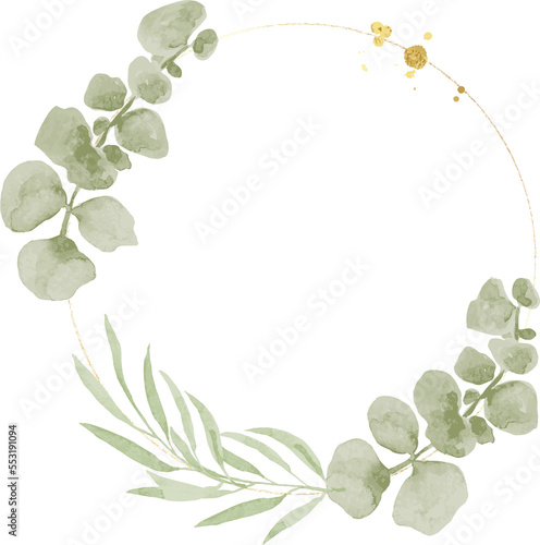 Naklejka premium Watercolor eucalyptus leaf gold wreath