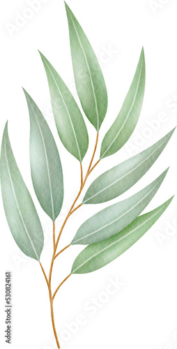 Naklejka premium Watercolor eucalyptus leaves and branch