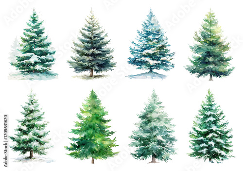Fototapeta premium Watercolor evergreen trees collection.