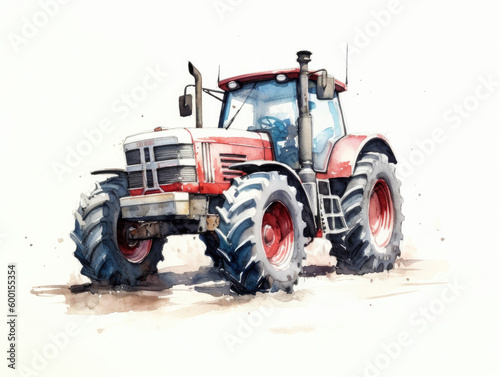 © GeertJan, Obraz premium Watercolor farm tractor, generative ai