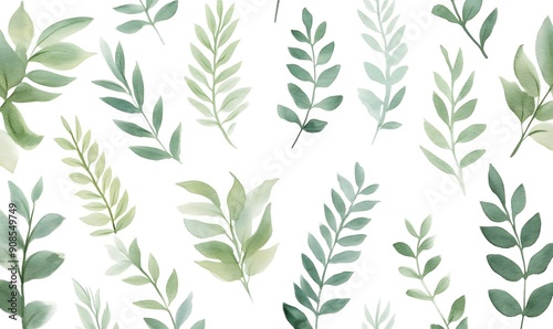 © simba kim, Fototapeta premium watercolor fern pattern, Generative AI
