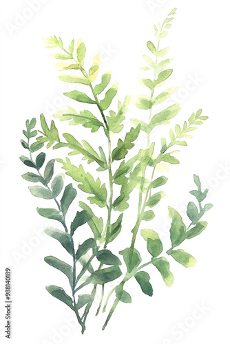 © Sukifli Dakheng, Fototapeta premium Watercolor Ferns Delicate fern leaves