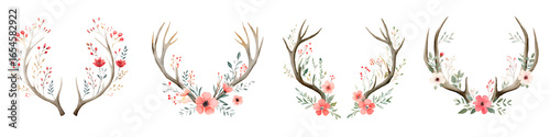 Obraz premium Watercolor Floral Antlers Decoration Set on White