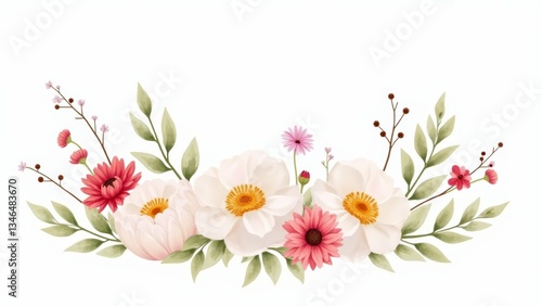 Fototapeta premium Watercolor Floral Arrangement With Pink Accents