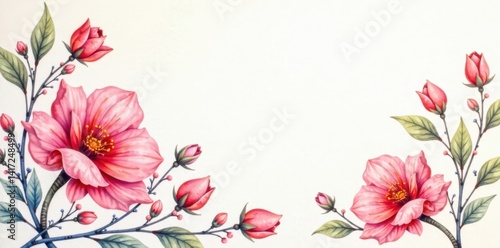 © suttavat, Fototapeta premium Watercolor floral design with curved lines and pastel colors , illustrations, flowers