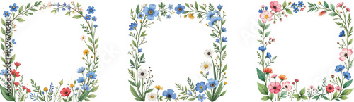 Fototapeta premium Watercolor Floral Frame Collection: Delicate Botanical Borders for Spring and Summer Designs, Set of Three