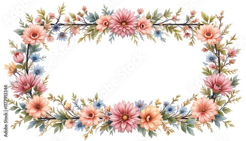 Obraz premium Watercolor Floral Frame: Delicate Tree Branches in Rectangle