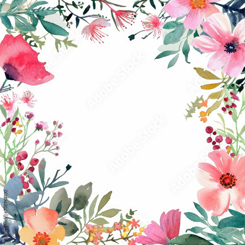 Fototapeta premium Watercolor floral frame on white background
