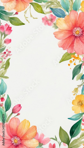 Fototapeta premium Watercolor Floral Frame With White Background