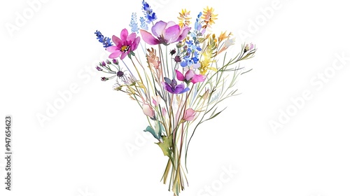 © Relaxe, Fototapeta premium Watercolor Floral Illustration of a Meadow in Bloom
