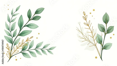 © Fthole, Naklejka premium Watercolor floral illustration set - colorful leaf branches collection, for wedding stationary, greetings, wallpapers, fashion, background. Eucalyptus, olive, green leaves, gold