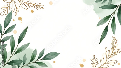Naklejka premium Watercolor floral illustration set - colorful leaf branches collection, for wedding stationary, greetings, wallpapers, fashion, background. Eucalyptus, olive, green leaves, gold