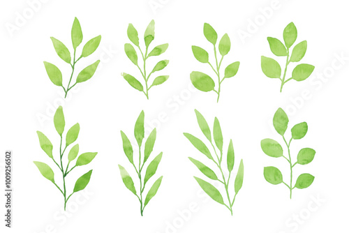 Naklejka premium Watercolor floral leaf illustration set - green leaf branches collection for...