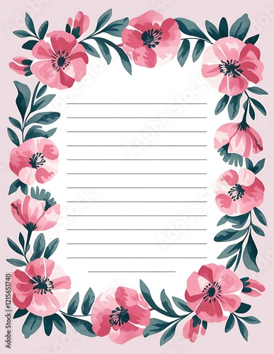 Fototapeta premium watercolor floral lined note pad