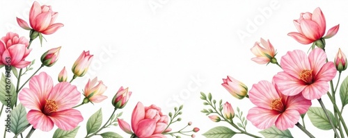 © Prayad, Fototapeta premium Watercolor floral motifs in soft pastel colors on a white background , floral design, garden, abstract