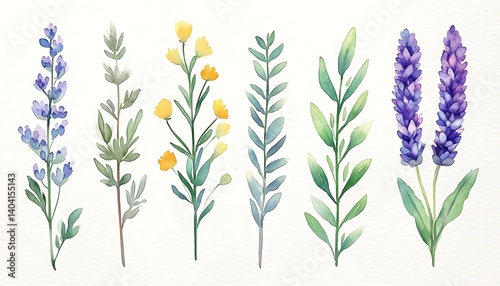 Fototapeta premium Watercolor Floral Set Herbs Flowers.