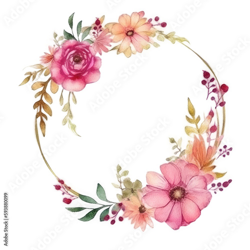 Fototapeta premium Watercolor floral wreath frame background. Illustration AI Generative.