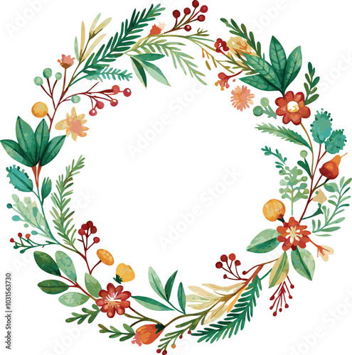 © Abubakar, Naklejka premium Watercolor Floral Wreath With Green Leaves