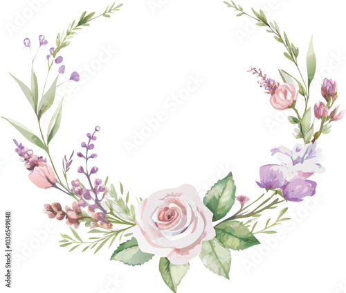 © Mamun, Naklejka premium Watercolor Floral Wreath With Single Rose