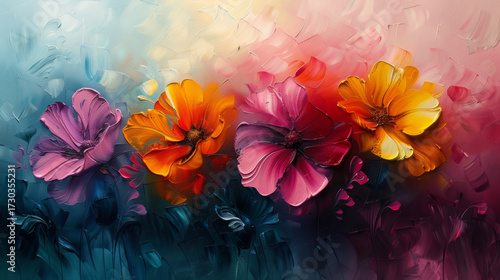 © racesy, Obraz premium watercolor flowers background