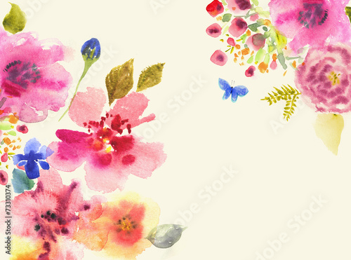 © Guz Anna, Fototapeta premium Watercolor flowers card
