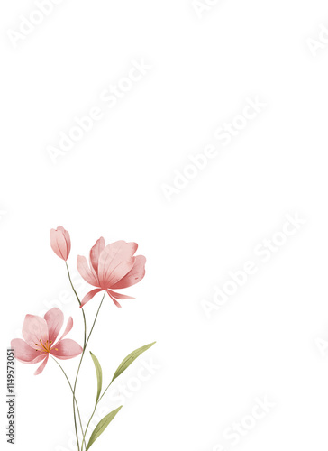 © Larisa, Naklejka premium Watercolor flowers, floral background, frame, border for greeting card, invitation, poster and other printing design. Isolated on white background. Hand drawing.