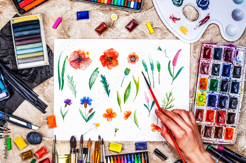© happy_lark, Fototapeta premium Watercolor flowers set