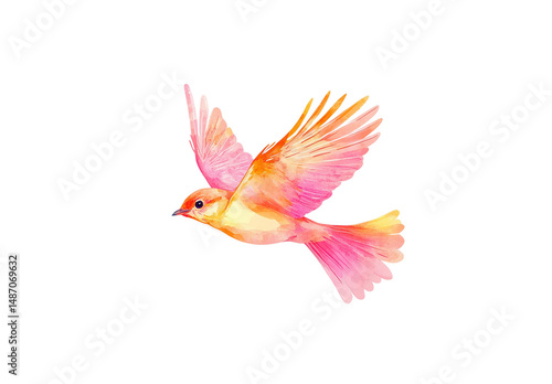 © lway, Obraz premium Watercolor flying bird, white background