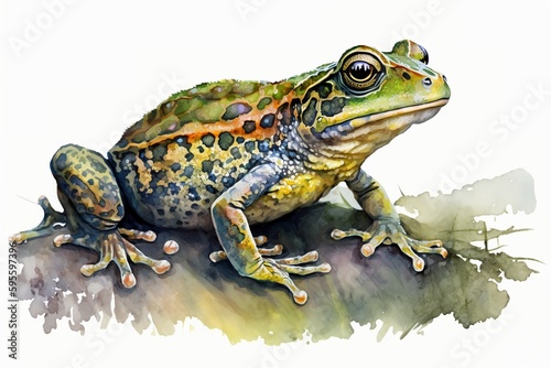 Fototapeta premium Watercolor forg illustration white background,Generative AI