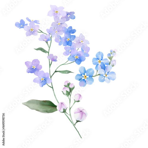 © Luzzsketch, Obraz premium Watercolor Forget Me Not Floral Bouquet Illustration