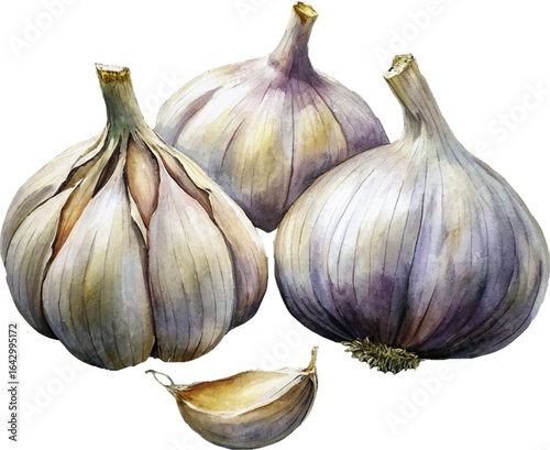 Fototapeta premium Watercolor garlic vector hand painted illustration
