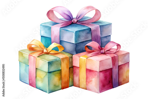 Obraz premium Watercolor gift box stack isolated on transparent background