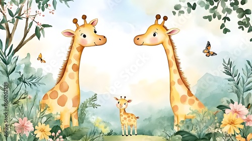 © Mach-1-Art, Naklejka premium Watercolor giraffe frame border.