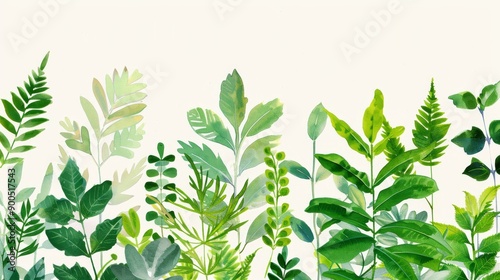 © Gummyz, Naklejka premium Watercolor Green Design Element. Clipart of Creeping Green Leaves
