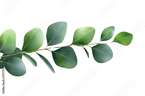 © Emqan, Fototapeta premium Watercolor Green Eucalyptus Leaves Garland, Isolated PNG with Transparent Background