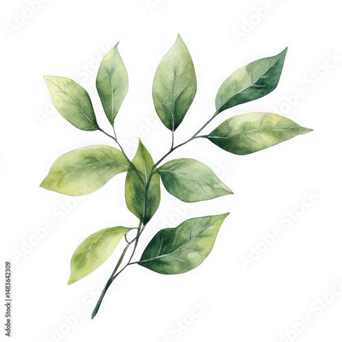 Naklejka premium Watercolor green leaf branch artwork on white background on transparent...