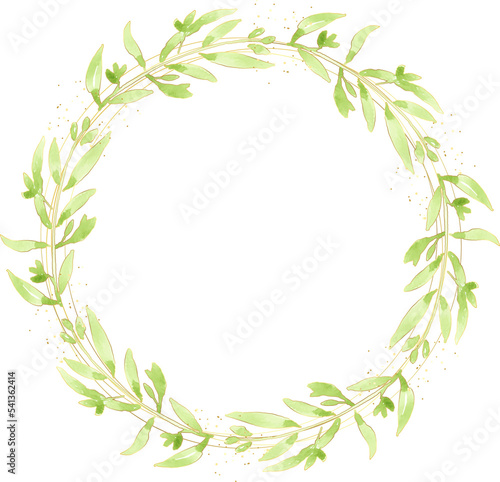 © Unchalee, Naklejka premium watercolor green leaves gold glitter wreath frame collection for logo or banner