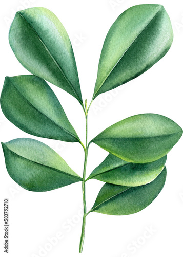 Naklejka premium Watercolor Green leaves on white background, botanical painting, spring plant