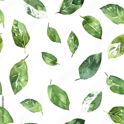 © Sagar, Fototapeta premium watercolor green leaves pattern, white background, seamless