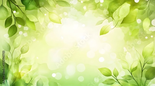 © Jamal, Fototapeta premium Watercolor Green Leaves Spring Nature Background