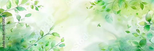 Fototapeta premium Watercolor green pastel leaves background.Lush green foliage on soft pastel background with watercolor effect, creating a serene and tranquil nature-inspired scene