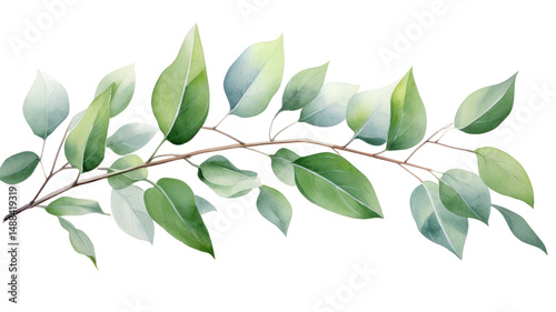 © Al-Mamun, Naklejka premium Watercolor Gum Tree Leaves Clipart — Eucalyptus Botanical Illustration on Transparent Background