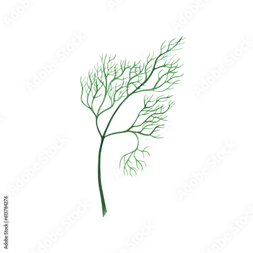 © Freshinglights, Fototapeta premium Watercolor hand drawn green dill, fennel vegetable isolated on white background. healthy plants for print, fabric, banner.