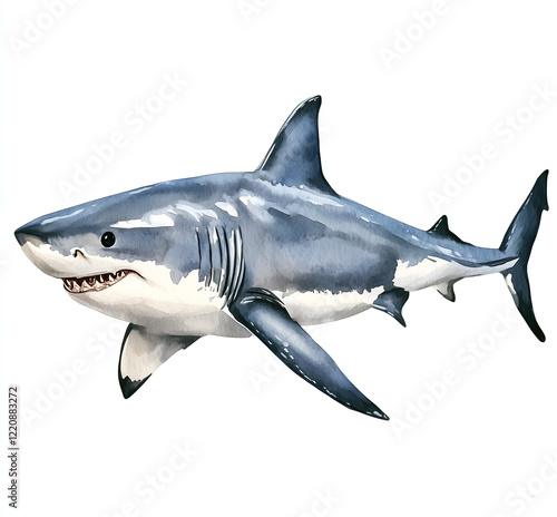 Fototapeta premium Watercolor hand-drawn white shark isolated on a solid background