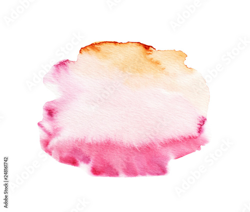 Fototapeta premium Watercolor hand-painted abstract yellow and pink stain illustration on white background
