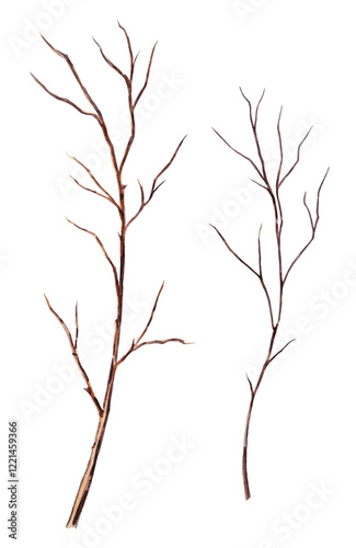 Obraz premium Watercolor hand-painted illustrations of dry branches on a transparent...