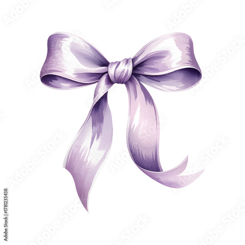 © Songrami, Naklejka premium Watercolor hand painted lavender ribbon bow illustration. Soft watercolor lavender gift bow decoration.